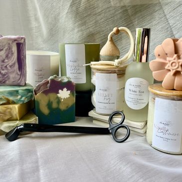 We offer a thoughtfully curated selection of small-batch, cold process soaps, 100% soy candles, rich body butters, and refreshing room and linen sprays—all made with plant-based ingredients and scented with essential oils or high-quality fragrance oils.